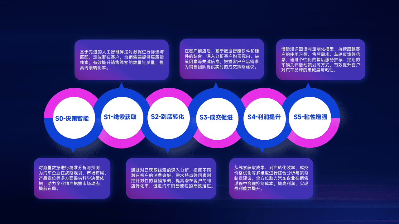 通过拓宽潜在客户来源、、、优化线索分配并提高到店转化率,,,,以增强销售效率。。。。同时,,,利用线索数据不断优化分析模型,,有效提升转化率,,扩大营销影响力。。。。